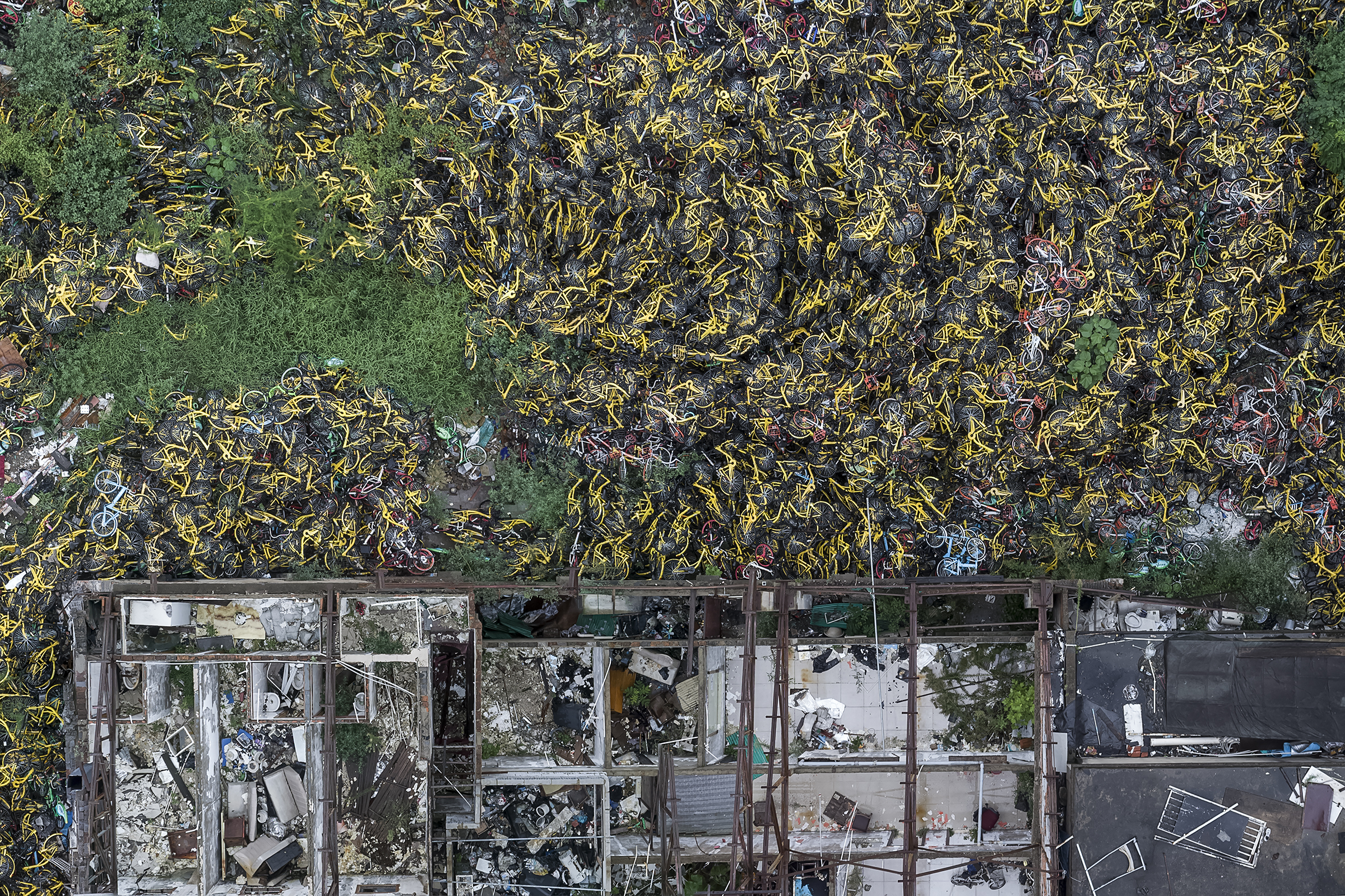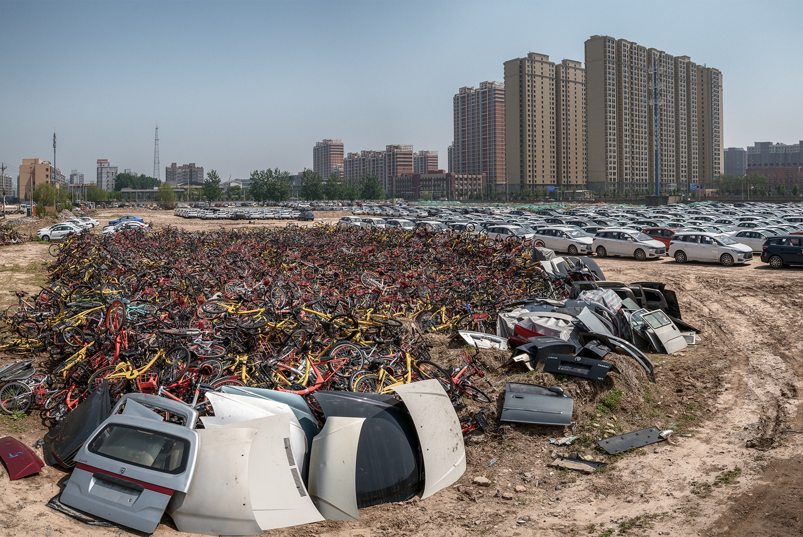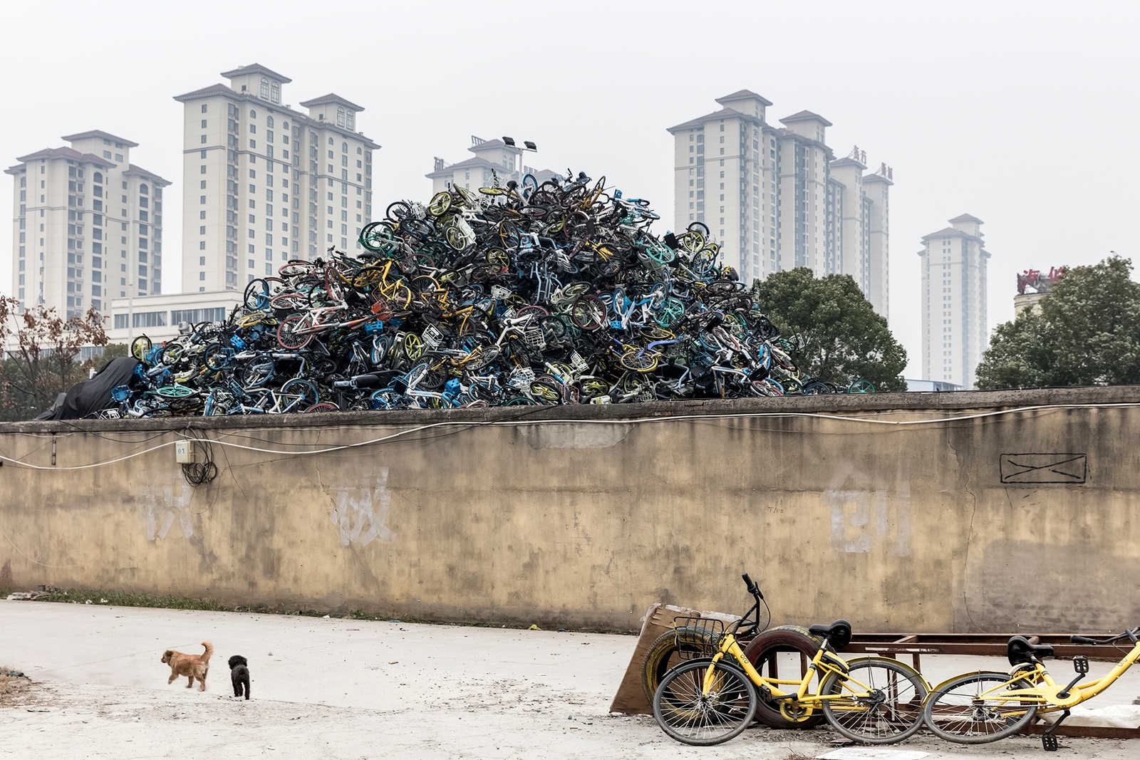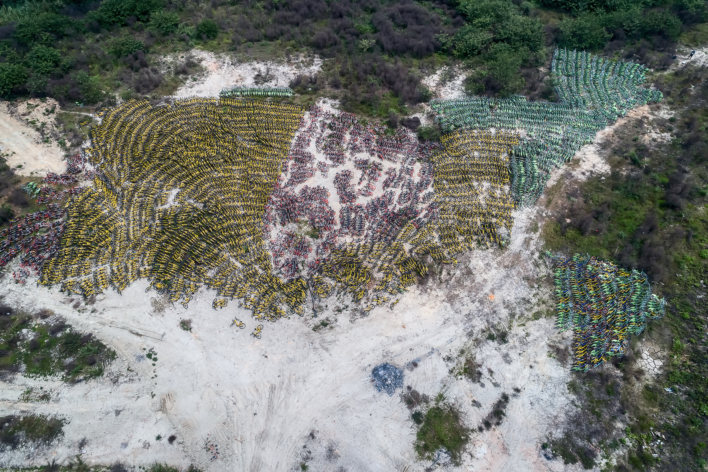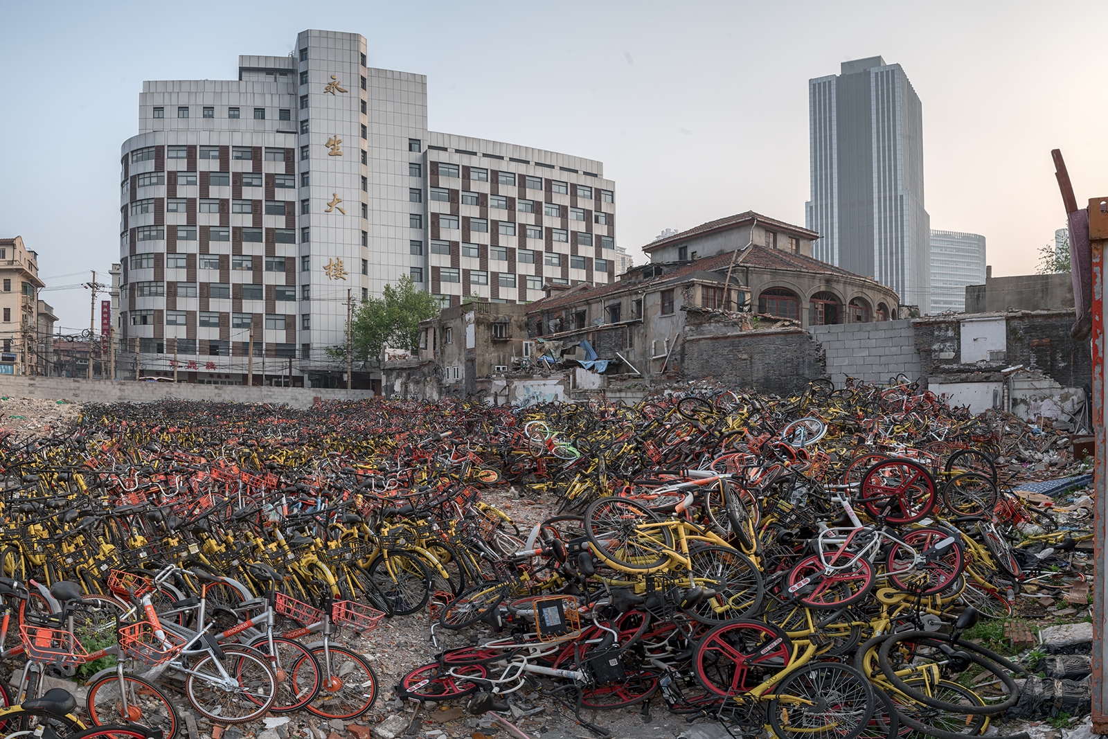 从一开始的放任不管,到2017年中期车多为患时,政府才觉不妙,开始实施限制管理,并由政府主导对市场上超量投放的单车进行收缴清理。这些被清理的临时堆车点在中国各大城市纷纷出现,体量庞大却又隐蔽难寻,被人们称为共享单车“坟场”。共享单车运营商因此纷纷倒闭,仅剩少数几家公司勉力运营。数十亿元人民币的用户押金无法退还,数百亿资本财富打造的共享单车弃如敝履,成了城市垃圾。