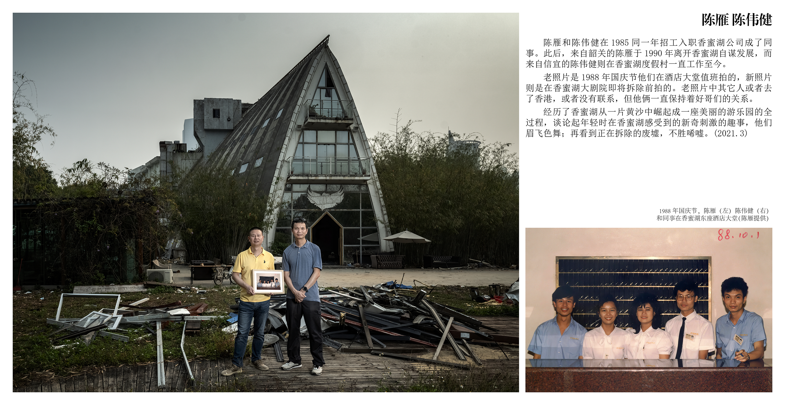 在拆除期间,我邀请了几十位普通市民和我一起重返香蜜湖,听他们讲述各自结缘香蜜湖的往事,讲述各自在深圳生活、工作的点点滴滴。参加的人中,有的是20世纪八九十年代从全国各地蜂拥而来的“弄潮儿”,他们留在了深圳,爱上了深圳,事实证明,他们是时代的幸运儿;有的是土生土长的原居民,他们对脚下这块土地发生的变化既不可思议又满怀感恩;有的是香蜜湖度假村曾经或现在的员工,他们亲历了香蜜湖从辉煌到衰落的转变,心中五味杂陈、感情复杂;还有一群刚来深圳打拼的年轻人,他们对香蜜湖的过往懵懂不知,却注定是与新香蜜湖相伴共生的新一代深圳人。